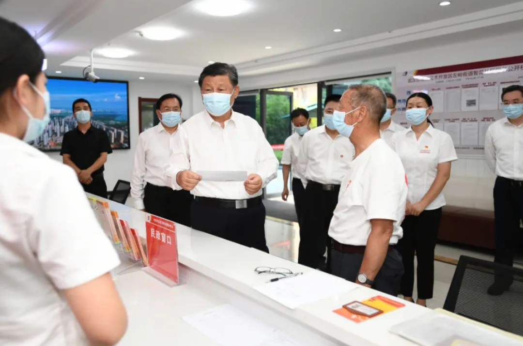 2022年6月28日,中共中央總書記、國(guó)家主席、中央軍委主席習(xí)近平在湖北省武漢市考察。這是28日下午,習(xí)近平在東湖高新區(qū)左嶺街道智苑社區(qū)黨群服務(wù)中心,向社區(qū)工作者了解黨建引領(lǐng)基層社區(qū)治理及便民服務(wù)等情況,并同前來辦事的老年人親切交談。