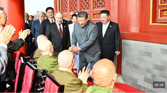 致敬英雄!習(xí)近平與天安門(mén)城樓觀禮席的抗戰(zhàn)老兵親切握手