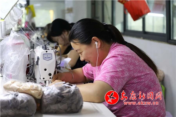 一湖好水滋潤(rùn)一方百姓。興起的社區(qū)工廠(chǎng),就設(shè)在湖岸不遠(yuǎn)的社區(qū)旁,還沒(méi)等孩子退去睡眼朦朧,縫紉機(jī)便噠噠咔咔地響了起來(lái)。日出而作、日落而息的模式被打破,山里人也從靠天吃飯的農(nóng)民變成了每月領(lǐng)工資的“藍(lán)領(lǐng)”。與水村漁市相映襯的,是一個(gè)個(gè)、一箱箱、一批批呆憨嬌萌的毛絨玩具,帶著高山流水的雅韻,承載著山里人勤勞致富的夢(mèng)想,從漢水出發(fā),一直走到海外。